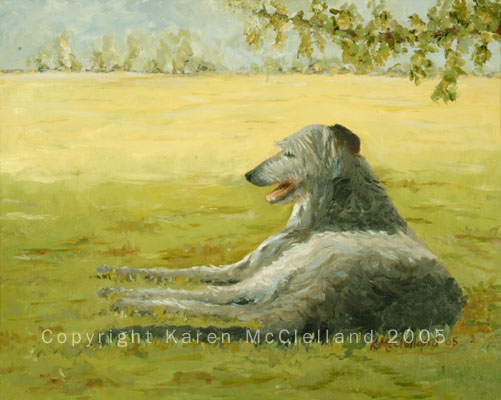 Dog paintings by Karen McClelland © 2001-2005, All rights reserved Copyright shall at all times remain vested in the Artist. No part of the work shall be used, reproduced, stored in a retrieval system, or transmitted in any form or by any means electronic, mechanical, photocopying, recording or otherwise, without the Artist's express written consent. |