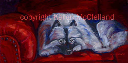 Dog paintings by Karen McClelland © 2001-2006, All rights reserved Copyright shall at all times remain vested in the Artist. No part of the work shall be used, reproduced, stored in a retrieval system, or transmitted in any form or by any means electronic, mechanical, photocopying, recording or otherwise, without the Artist's express written consent. |
